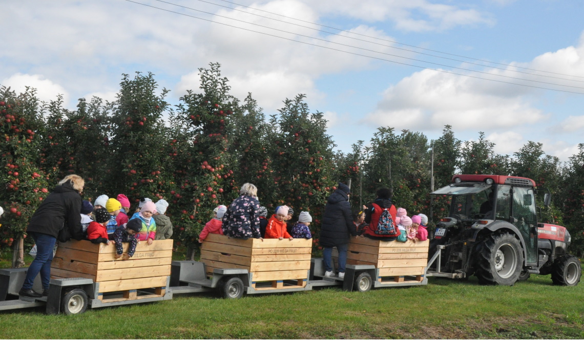 Czeka Was niezwykła podróż do sadów. Wyruszymy w nią malutkimi wagonikami ciągniętymi przez traktor. W trakcie tej podróży poznamy Pana sadownika, który opowie nam o pracach związanych z prowadzeniem sadu. Poznamy odmiany jabłoni rosnące w sadzie oraz spróbujemy przepysznych jabłek, samodzielnie zerwanych prosto z drzewa. Na koniec dowiemy się dlaczego warto jeść jabłka i zwiedzimy pomieszczenie służące do przechowywania jabłek.